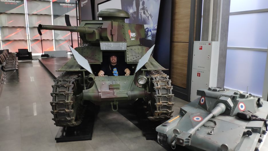 Jednak najbardziej w pamięć zapadło mi – i sądzę, że reszcie wycieczki też – UX Lab. Miejsce, w którym bada się to, jak zachowuje się użytkownik podczas grania. Zaproszony gość zakłada na głowę sensory i po prostu swobodnie strzela do innych czołgów. W tym czasie twórcy podglądają jego ruchy myszką, wybory czy aktywność mózgu. Badanie nawyków to w końcu niezbędny element do rozwoju gier sieciowych.