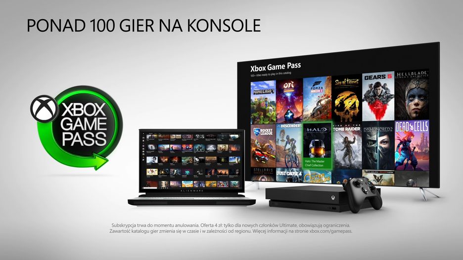 Usługa Xbox Game Pass to miesięczny abonament (40 zł), w ramach którego użytkownik otrzymuje dostęp do ponad 200 gier, w tym także tytułów premierowych. Dodatkowo każdego miesiąca w katalogu pojawiają się nowe tytuły.
