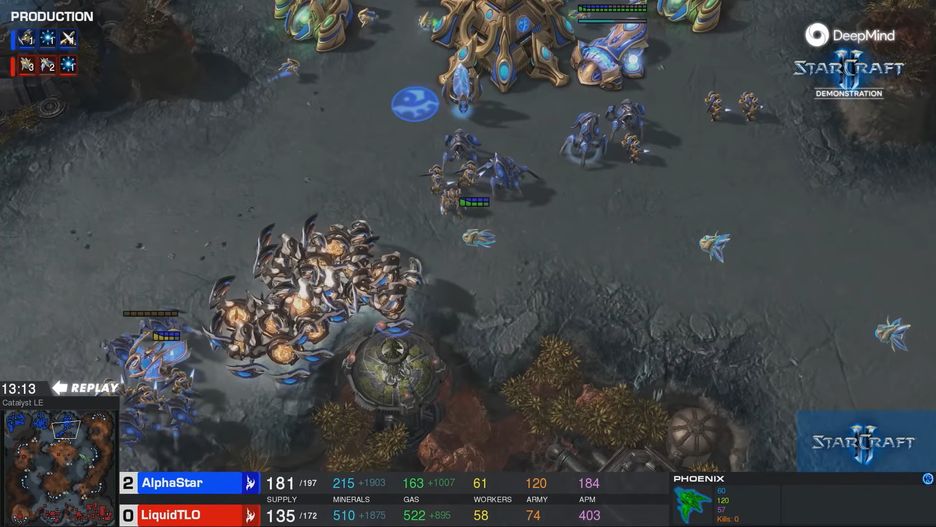 Na pewno SI AlphaStar byłoby jeszcze mocniejszym przeciwnikiem, ale ograniczono jej możliwości akcji na minutę, aby miała takie jak najlepsi zawodowi gracze, a nie komputer mogący dokonywać setek, a nawet tysięcy kliknięć na sekundę. Dzięki temu sztuczna inteligencja skupiła się na podejmowaniu decyzji i planowaniu, a nie masowości ruchów (chociaż i tak poziom szybkości, jaki reprezentują najlepsi gracze jest bardzo wysoki).